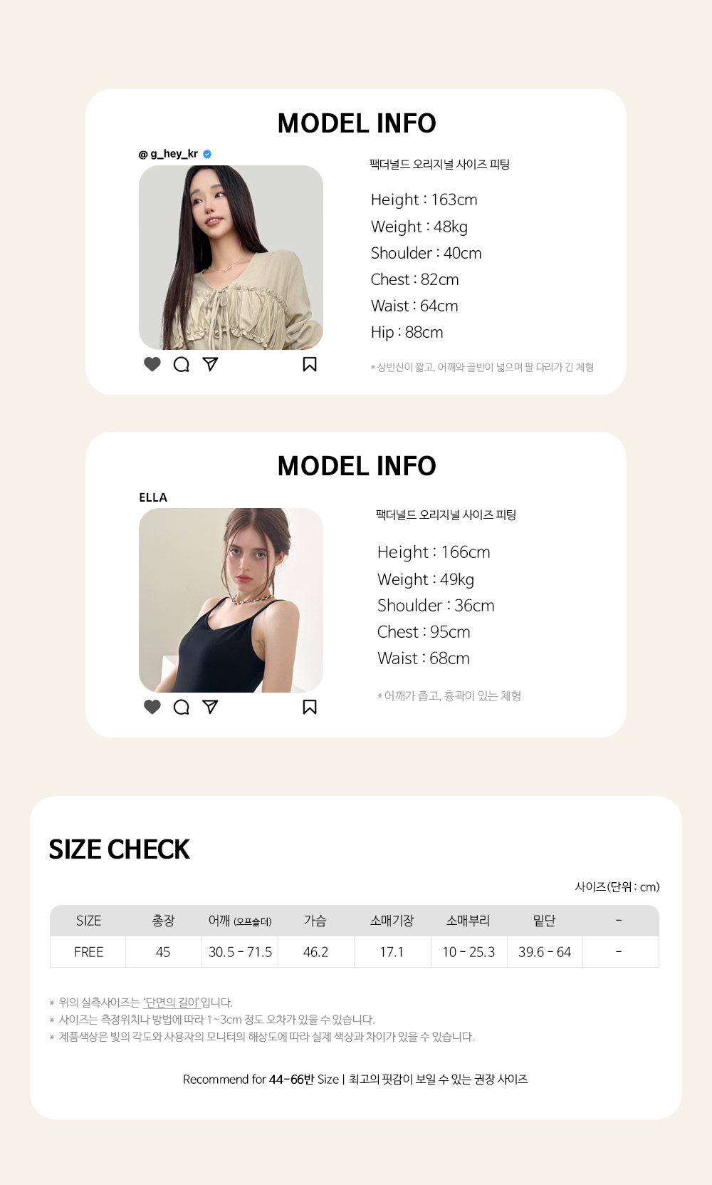 Recommend for 44 - 66반 Size | 권장 사이즈는 최고 핏감 보일 수 있는 사이즈입니다.