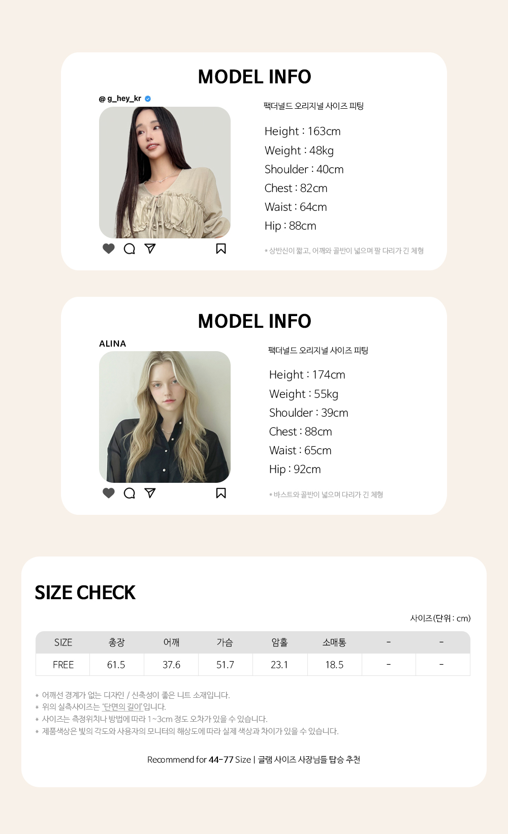 Recommend for 44 - 77 Size | 권장 사이즈는 최고 핏감 보일 수 있는 사이즈입니다.