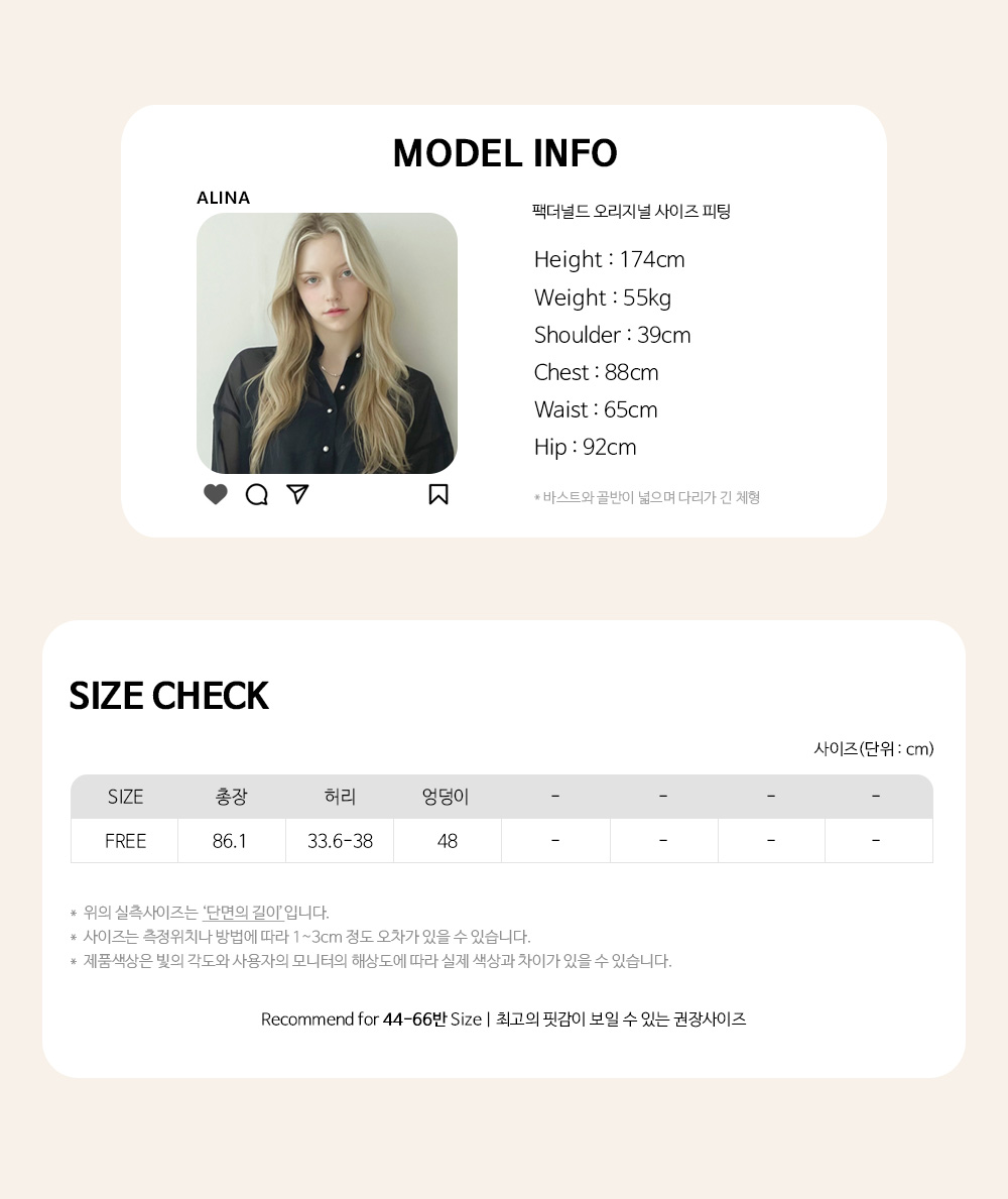 Recommend for 44 - 66반 Size | 권장 사이즈는 최고 핏감 보일 수 있는 사이즈입니다.