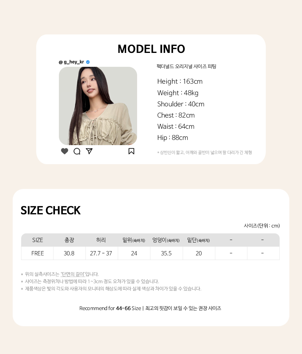 Recommend for 44 - 66 Size | 권장 사이즈는 최고 핏감 보일 수 있는 사이즈입니다.