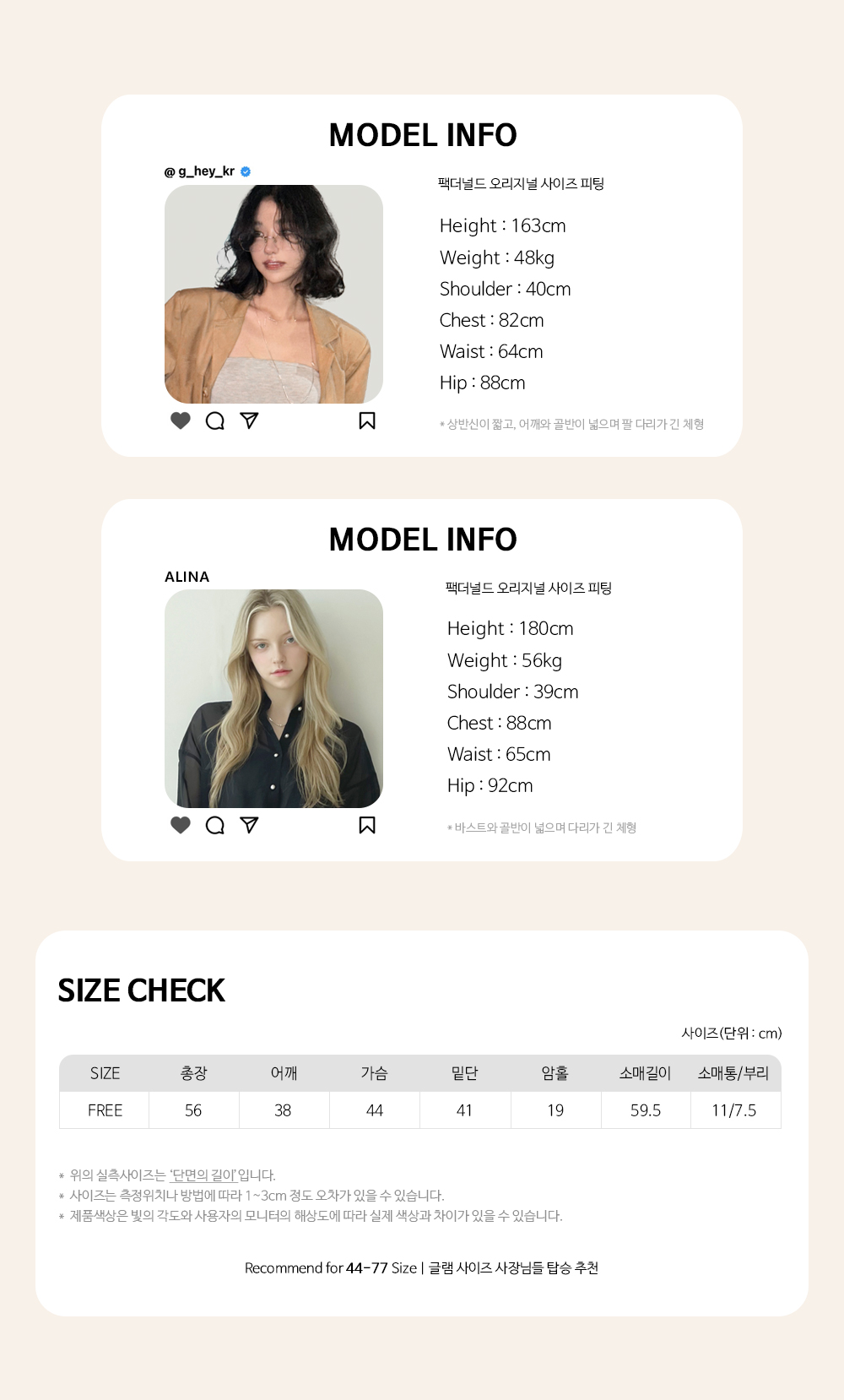 Recommend for 44 - 77 Size 사이즈 | 권장 사이즈는 최고 핏감 보일 수 있는 사이즈입니다.