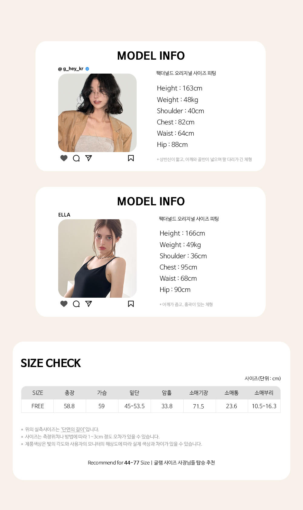 Recommend for 44 - 77 Size 사이즈 | 권장 사이즈는 최고 핏감 보일 수 있는 사이즈입니다.