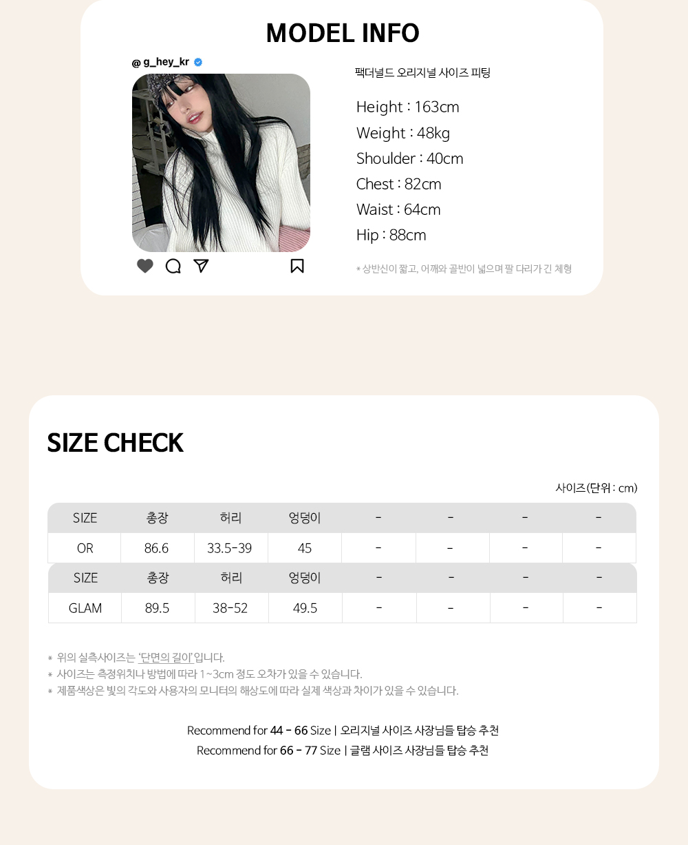 Recommend for 44 - 66 Size | OR 사이즈