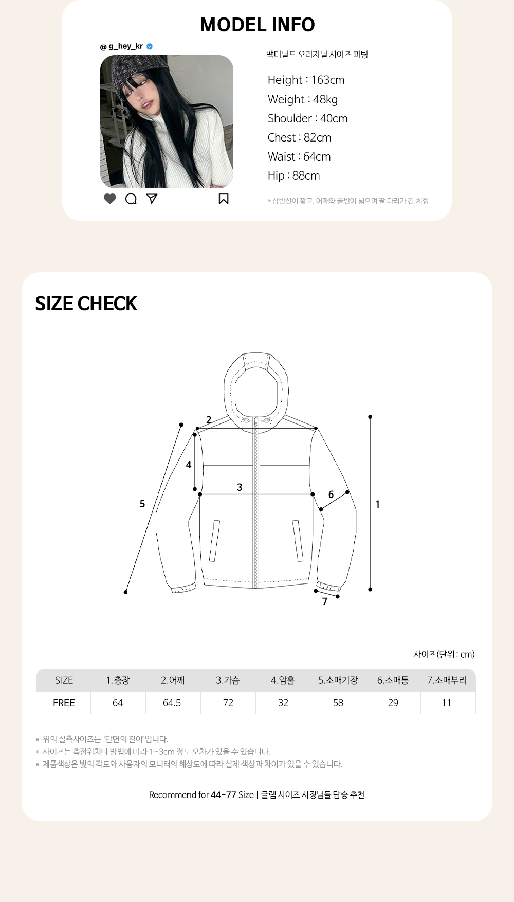 Recommend for 44 - 88 Size | 권장 사이즈는 최고 핏감 보일 수 있는 사이즈입니다.