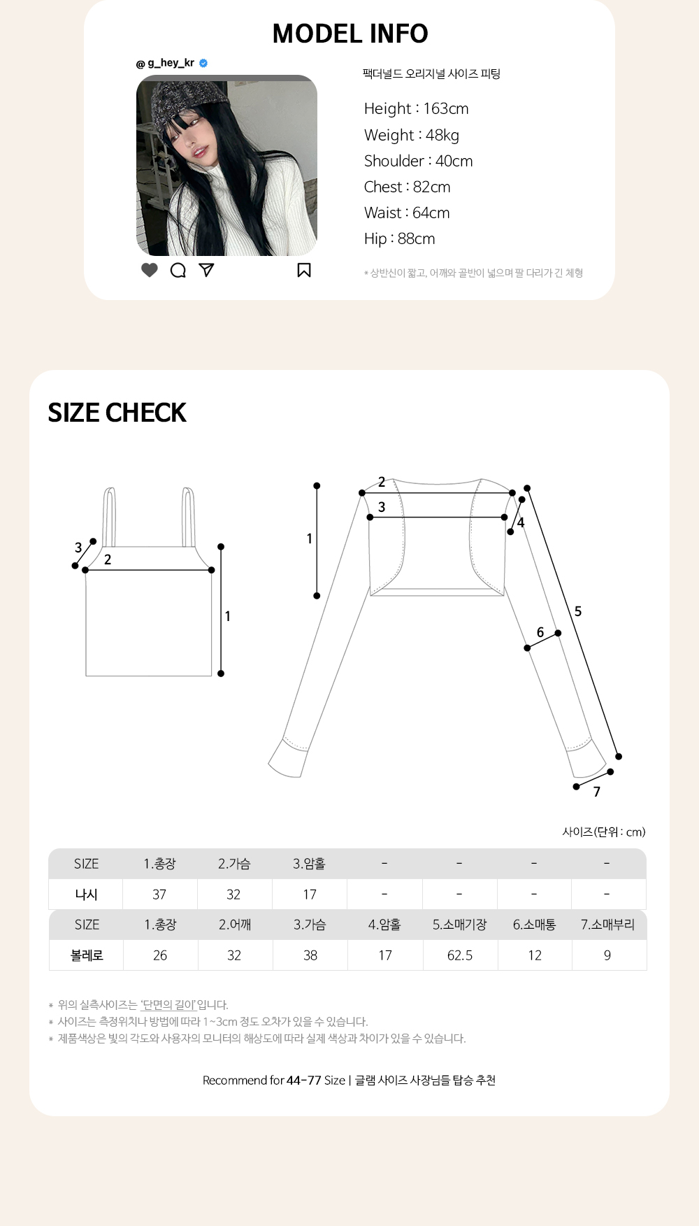 Recommend for 44 - 66반 Size | 권장 사이즈는 최고 핏감 보일 수 있는 사이즈입니다.