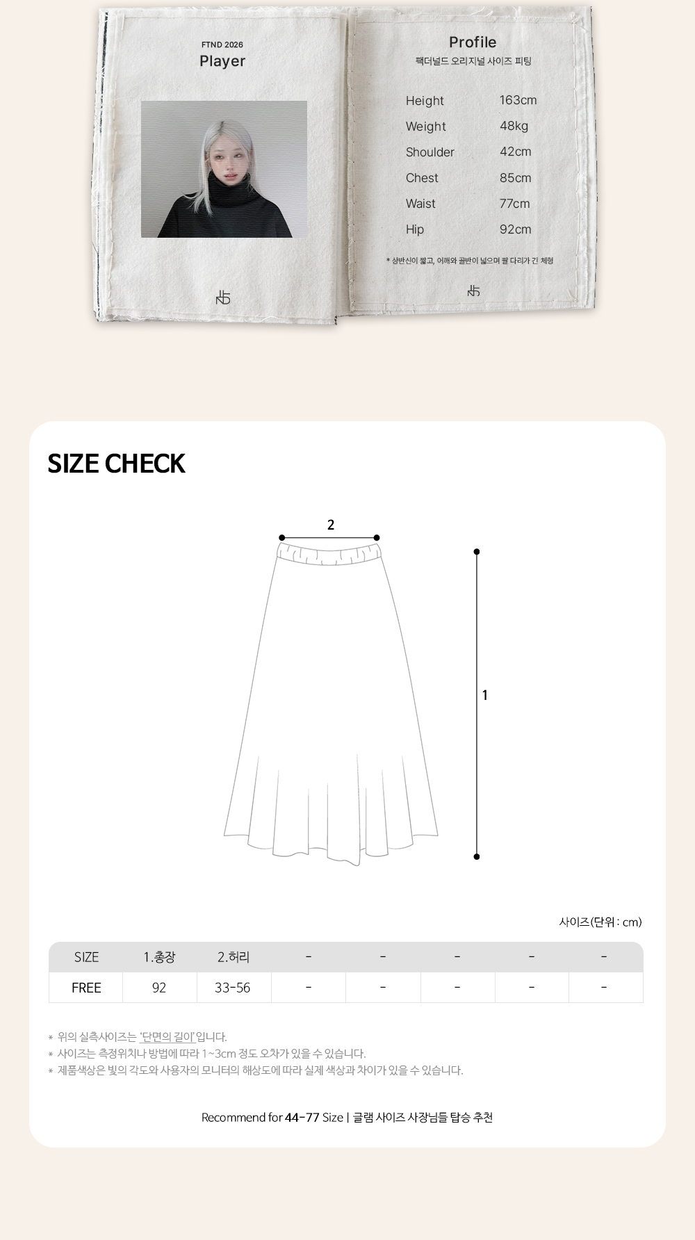 Recommend for 44 - 77 Size | 권장 사이즈는 최고 핏감 보일 수 있는 사이즈입니다.