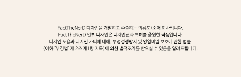 ※Notice : 팩더널드는 도매업종이며, 디자인을 개발하고 수출하는 의류 도/소매 회사입니다. 팩더널드의 일부 디자인은, 디자인권과 특허 출원한 작품입니다. 디자인 도용 및 디자인 카피에 대해서, 부정경쟁방지 및 영업비밀 보호에 관한 법률 (이하, '부경법' 제 2조 제 1항 자목)에 의한 법적 조치를 받으실 수 있음을 알려드립니다.