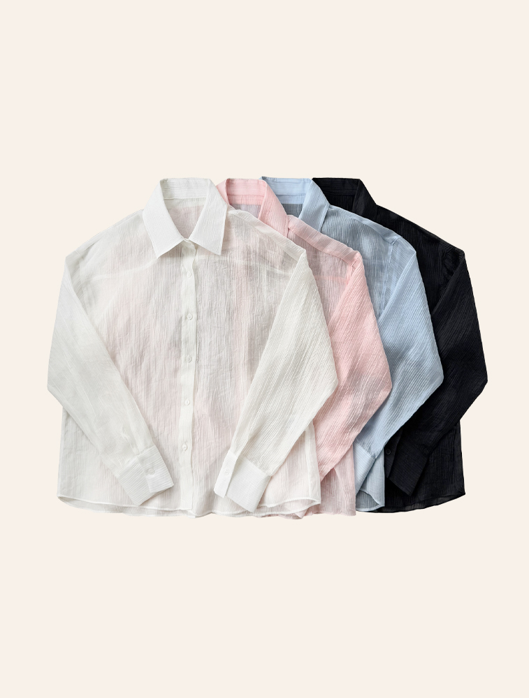 시스루 셔츠의 이너에 어떤 컬러를 받쳐 입어도 자연스러운 텐셀 컬러를 볼 수 있음